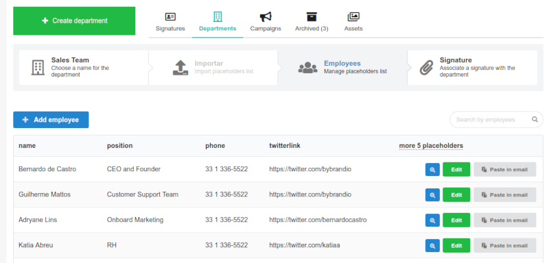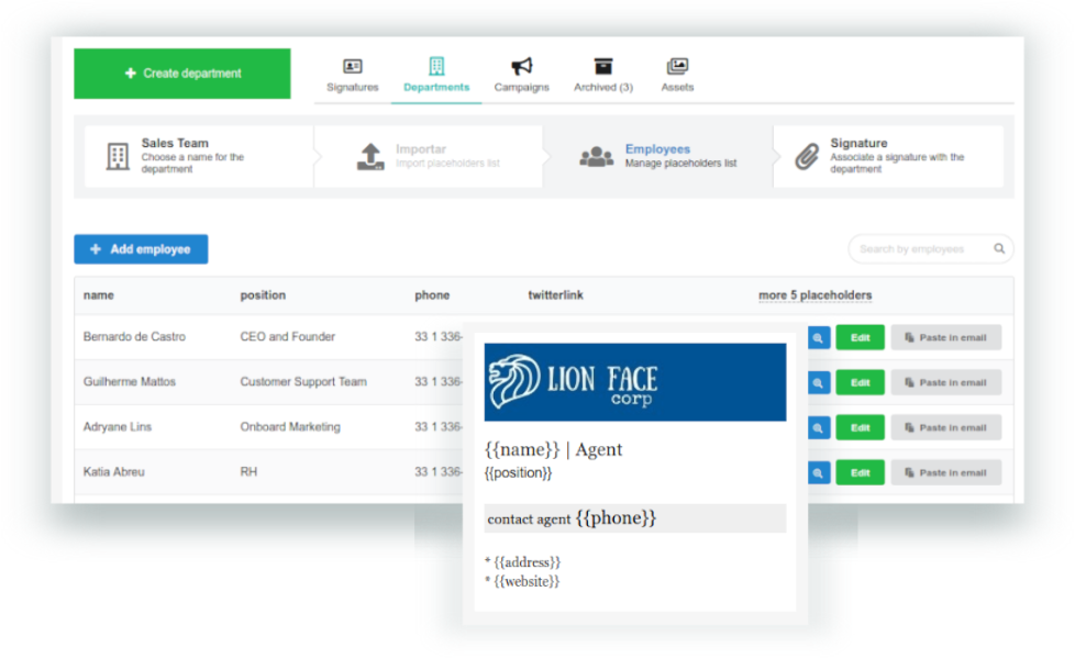 With Bybrand, your IT team no longer needs to spend much time and effort creating, deploying, and updating employee email signatures for departments or teams in your organization. Bybrand enables IT professionals to use placeholders to fill multiple email signatures with employee information at once instantly.