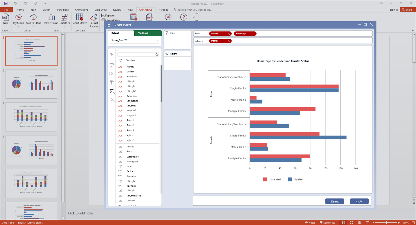 Another powerful DataPlay functionality is that it links the charts to cross-tabulations and actual data rather than bind them with their resulting tables. This allows the users to retain all their manual work while refreshing the values of charts when there’s a change in the dataset. This, in its turn, reduces the time spent on repetitive studies from hours and days to minutes.