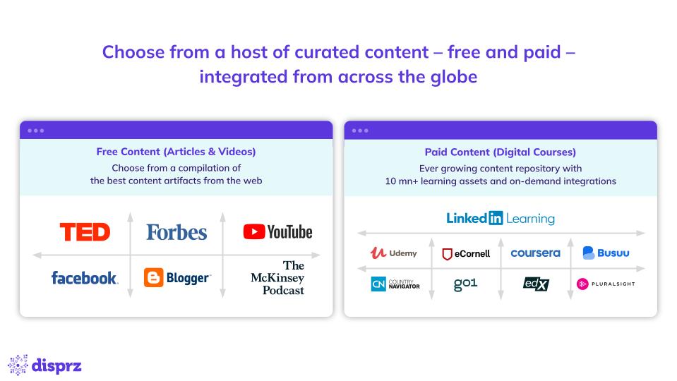 Solution: Disprz integrates with popular Massive Open Online Courses (MOOCs) and provides customizable dashboards for performance tracking for a personalized learning platform. Moreover, Disprz offers classroom coaching, personalized learning journeys, and gamification features for a digital-first culture, With this, there will be continuous learning and rapid scalability.