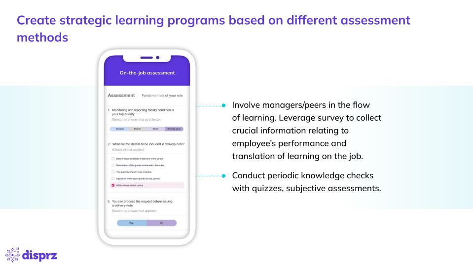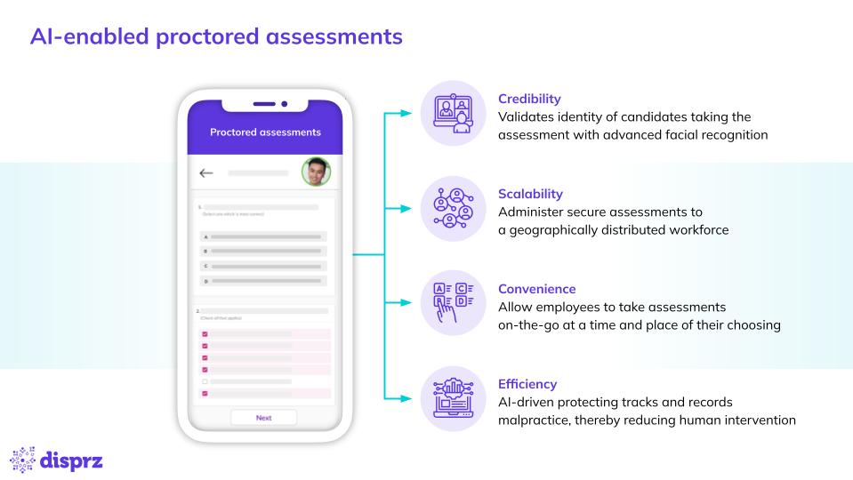 Disprz offers multiple forms of assessments, including periodic knowledge checks and peer reviews. This provides valuable insights into learner progress and performance. By leveraging AI-enabled proctored assessments, organizations can scale evaluations efficiently while maintaining credibility and integrity.