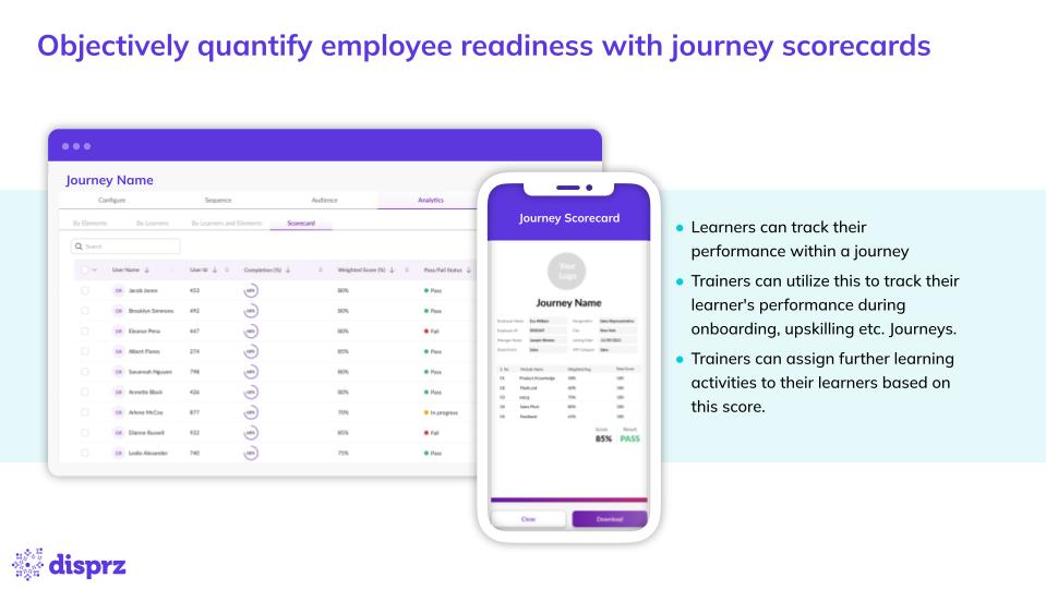 Solution: Disprz maps role-specific skills and creates personalized learning journeys to facilitate cross-functional training. With content auto-assignment based on key performance indicators (KPIs) and performance tracking through role scores, Disprz ensures comprehensive cross-functional training initiatives across departments and hierarchy levels.