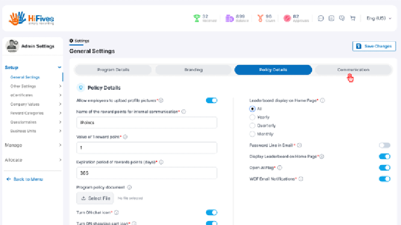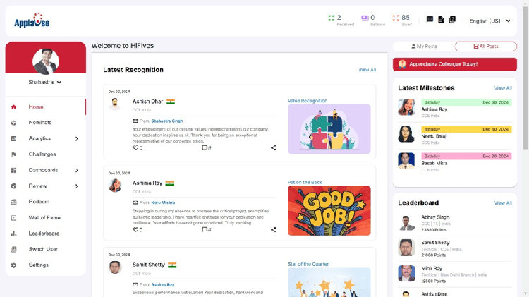HiFives is an enterprise-grade employee rewards, recognition, and engagement platform that helps organizations build a culture of appreciation and innovation. It enables managers and peers to recognize employees instantly across web, mobile, MS Teams, Slack, and WhatsApp. The platform offers AI-driven recognition prompts, gamified leaderboards, and an extensive global rewards catalog.