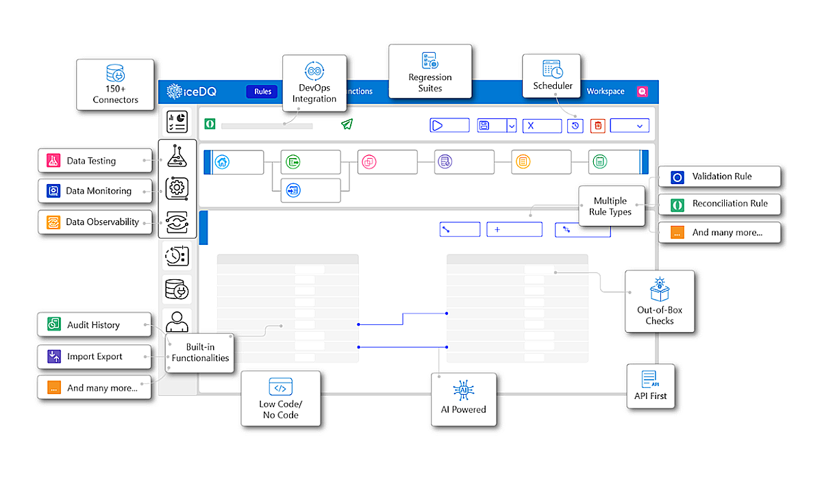iceDQ (Integrity Check Engine for Data Quality) is a DataOps testing and monitoring platform that engineers data reliability across the entire data lifecycle. Unlike traditional data quality tools that simply report on issues, iceDQ actively engineers data reliability through its proprietary in-memory auditing rules engine.