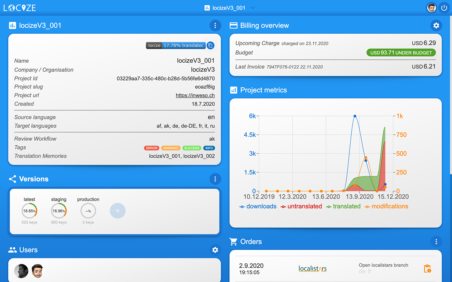 locize aids you in organizing your project even after your original translation is done. One way it does that is by helping you update your content without replacing an existing file or starting a wholly new project. You can also keep track of major changes via the tool or check translations with the solution’s CDN.