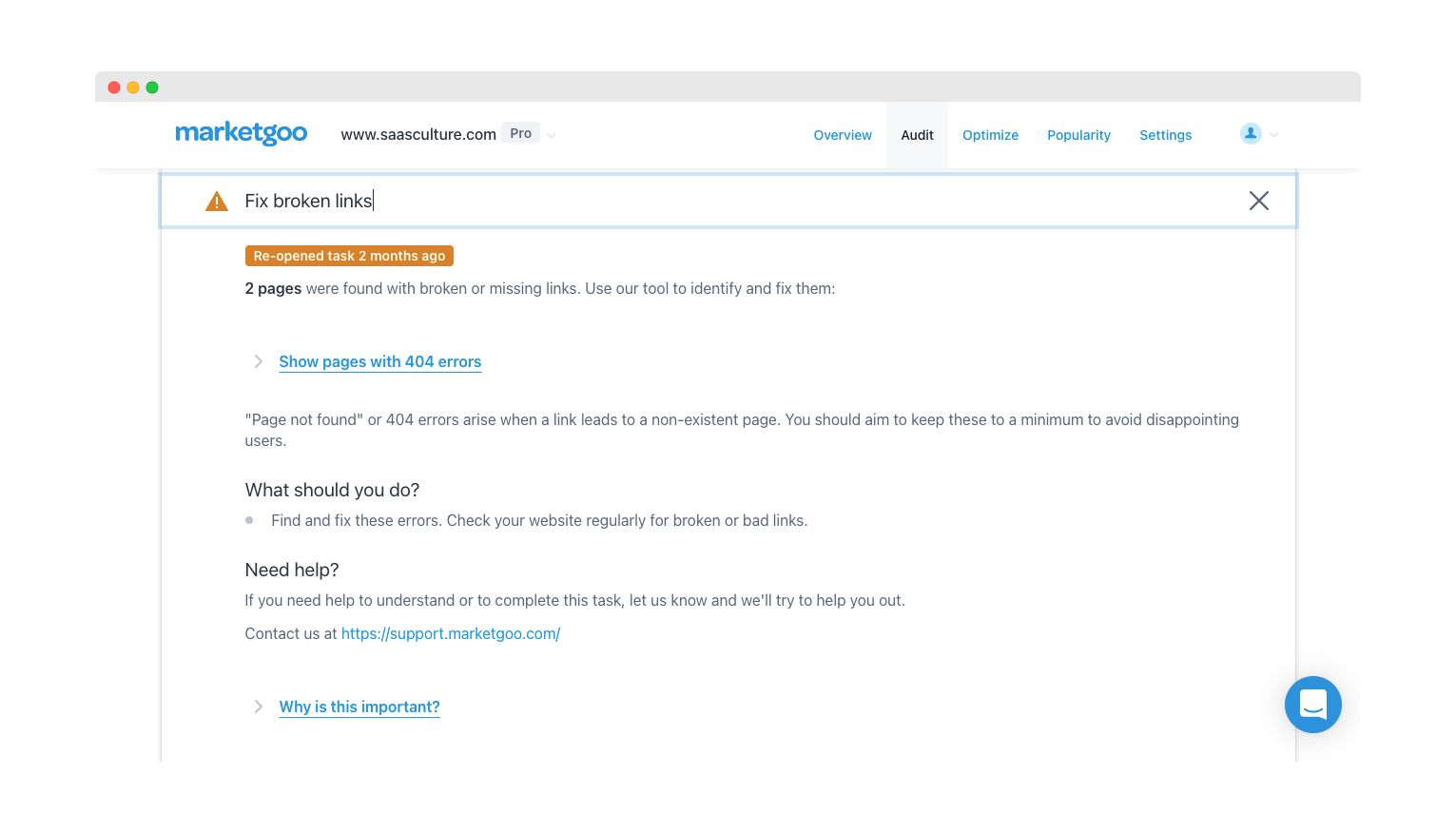 marketgoo is a powerful search optimization and website marketing tool that is designed with propriety technology. It is an easy-to-use platform that has helped many small to medium business jumpstart their website optimization.