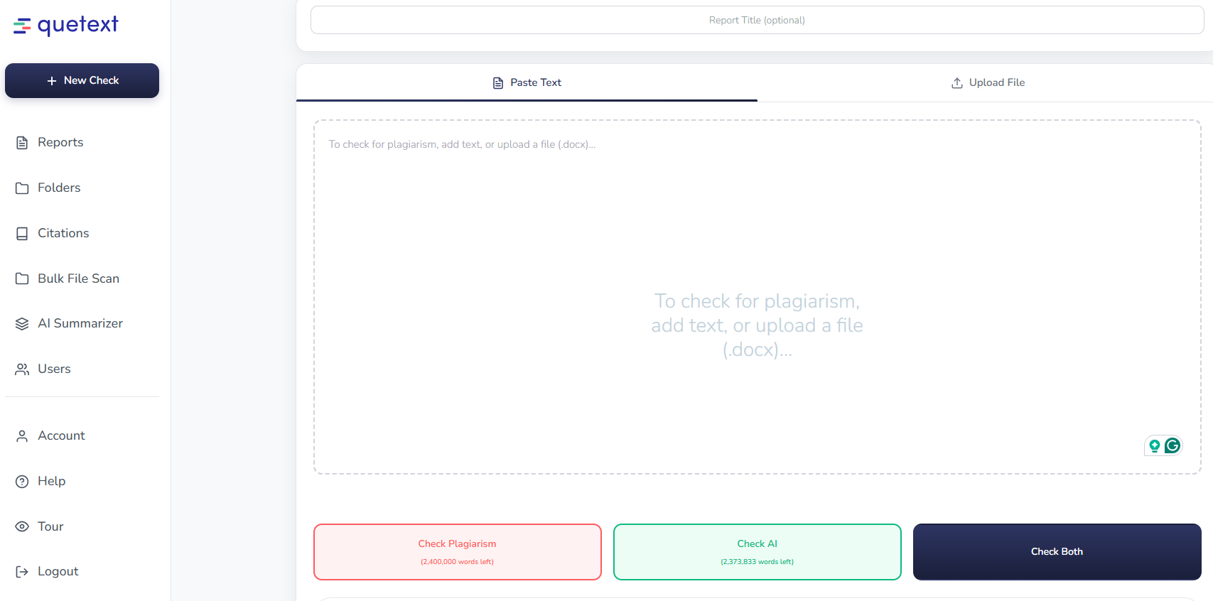 For organizations managing high volumes of content, the platform supports bulk file uploads to facilitate simultaneous analysis. This capability allows teams to process up to 100 documents in a single batch, significantly reducing the time required for large-scale audits. It ensures consistent quality control across entire departments or classrooms.
