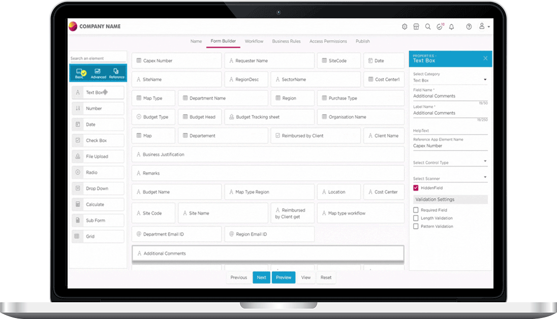 Complete control over business rules and validations. Quixy’s rules engine feature allows for a no-code configuration of business rules and validations. With this feature, you can set access limits to form data down to the field level in order to control who can view or modify the information and stage of the workflow process.