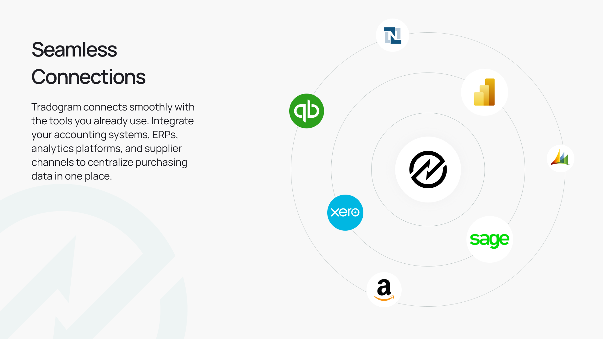 Tradogram can integrate with any cloud-based application like your financial/accounting system and ERP.